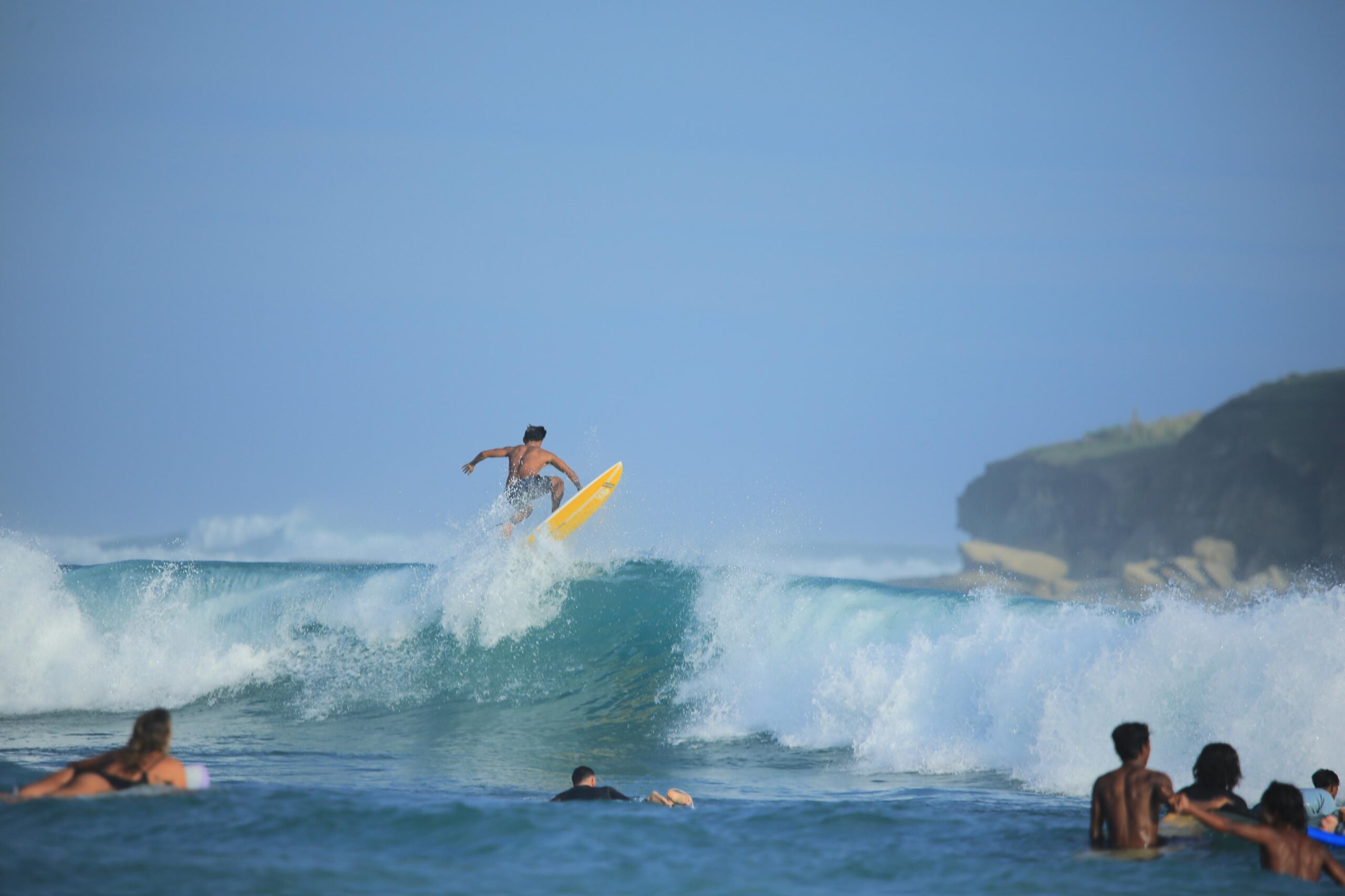 Bring swimwear, sunscreen, a towel, and water. We provide surfboards, but you’re welcome to bring your own if you have one. Women should dress conservatively before and after being in the boat, as Indonesia is a conservative country. A rash guard or wetsuit is also recommended for sun protection and comfort, we can also provide one, please let me know prior the class.
